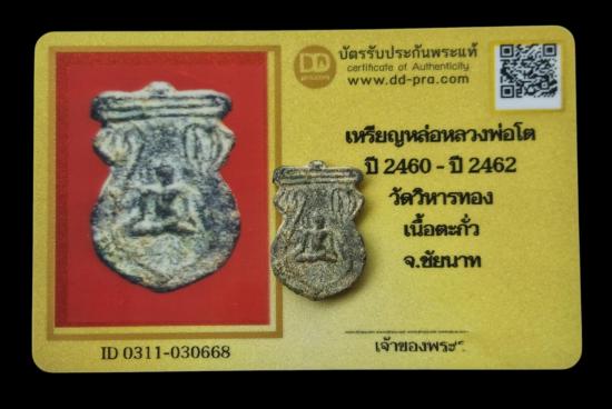 เหรียญหล่อโบราณหลวงพ่อโต วัดวิหารทอง จังหวัดชัยนาท พิมพ์เสมาเนื้อตะกั่ว ว่ากันว่าหลวงปู่ศุขปากคลองมะขามเฒ่าปลุกเสกประมาณ ปี2460 สุดยอดประสบการณ์ของเหรียญ จ.ชัยนาท มาพร้อมบัตรรับรองพระแท้จาก dd-pra |