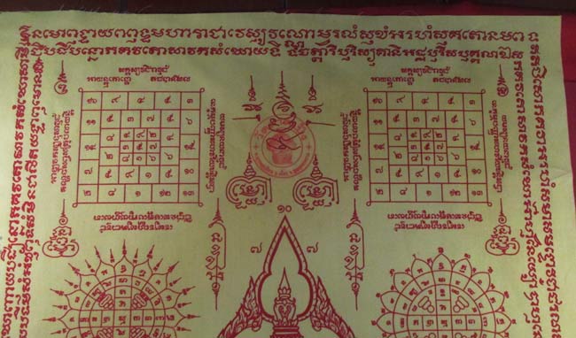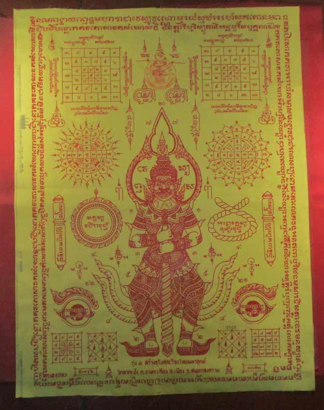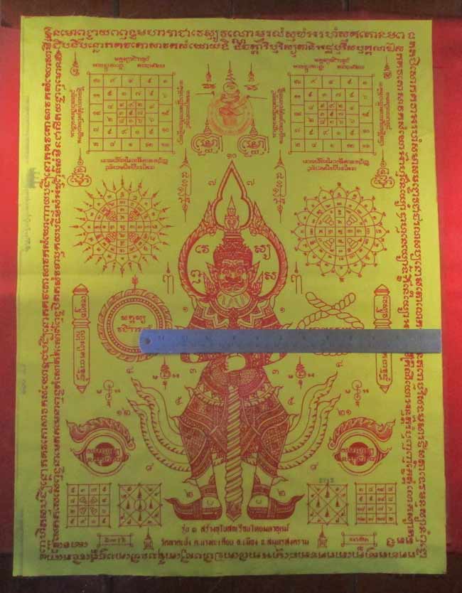 ผ้ายันต์ ท้าวเวสสุวรรณ รุ่น ๑ สร้างอุโบสถเรือนไทยมหาอุตม์ วัดลาดเป้ง ต.นางตะเคียน อ.เมือง จ.สมุทรสงคราม ครับ (สีแดง ครับ)