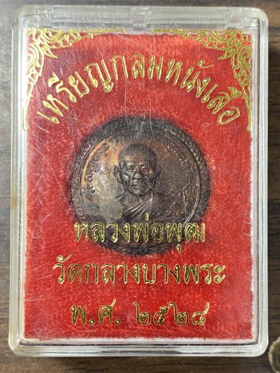 เหรียญกลมหลังเสือ หลวงพ่อพุฒ วัดกลางบางพระ จ.นครปฐม ปี2528 พร้อมกล่อง |