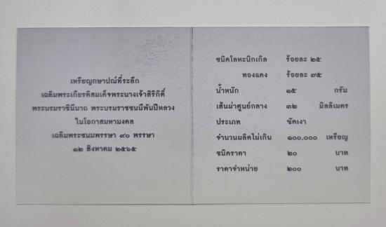 เหรียญ 20 บาท (ขัดเงา) เหรียญกษาปณ์ที่ระลึกเฉลิมพระเกียรติ สมเด็จพระนางเจ้าสิริกิติ์ พระบรมราชินีนาถ พระบรมราชชนนีพันปีหลวง ในโอกาสมหามงคลเฉลิมพระชนมพรรษา 90 พรรษา |