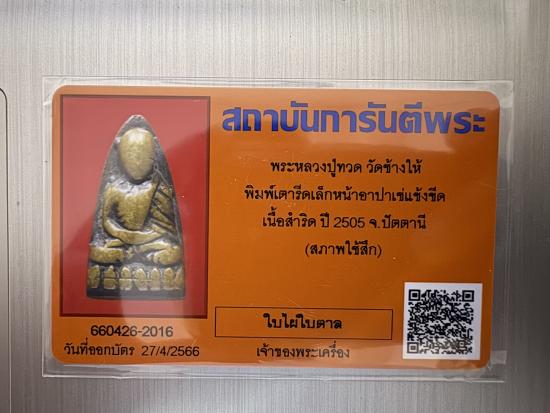 พระหลวงปู่ทวด วัดช้างให้ พิมพ์เตารีดเล็ก หน้าอาปาเช่ แข้งขีด (นิยมสุด) เนื้อสำริด ปี 2505 จ.ปัตตานี พร้อมบัตรรับรองสถาบันการันตีพระ |