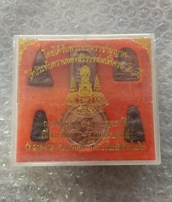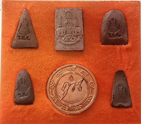 พระชุด หลวงพ่อคูณ เบญจภาคี เนื้อเหล็กน้ำพี้ ผสมแร่บางไผ่ ด้านหลังประทับตราฉลองสิริราชสมบัติครบ 50 ปี วัดสามง่าม นนทบุรี |
