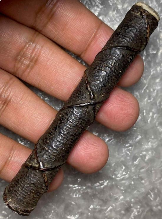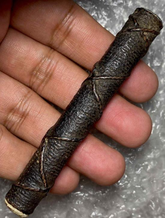 รายละเอียด ตะกรุดหลวงพ่อปานขนาดยาว4นิ้วเนื้อตะกั่วศิลปะถักเชีอกเอกลักของสำนักนี้รักดำอมแดงตะกรุดดอกนี้ไม่ค่อยได้ใช้รักเชือกเลยยังคงสภาพที่ดีครับ