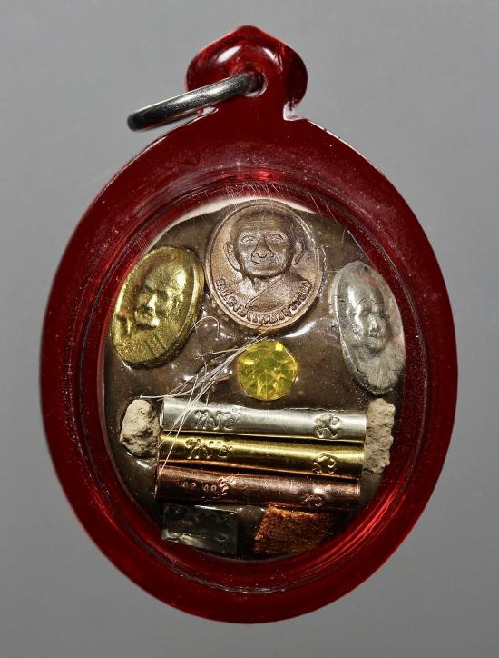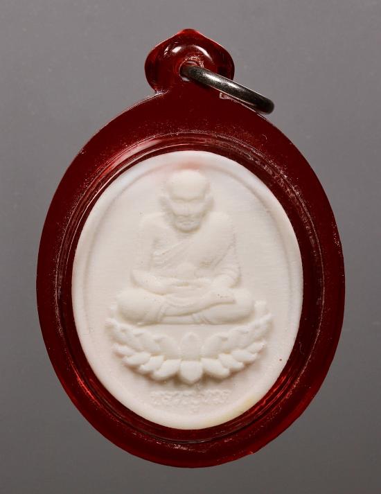 หลวงปู่ทวด หลวงปู่หงษ์เสก วัดเพชรบุรี จ.สุรินทร์ ปี 2555 (เนื้อกระดูกช้างแกะ หลังผงมวลสารเก่า ฝังเหรียญหลวงปู่หงษ์ ตะกรุด 3 ดอก พลอยเสก