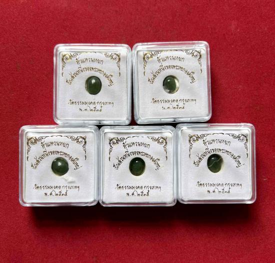 ชื่อพระเครื่อง หัวแหวนหยก ส่วนหนึ่งของพระหยก องค์ใหญ่ที่สุดในโลก จัดสร้างโดย หลวงพ่อวิริยังค์ (สมเด็จพระญาณวชิโรดม) วัดธรรมมงคล พ.ศ. 2536 ยกชุด 5 หัวกล่องเดิม เคาะแรก