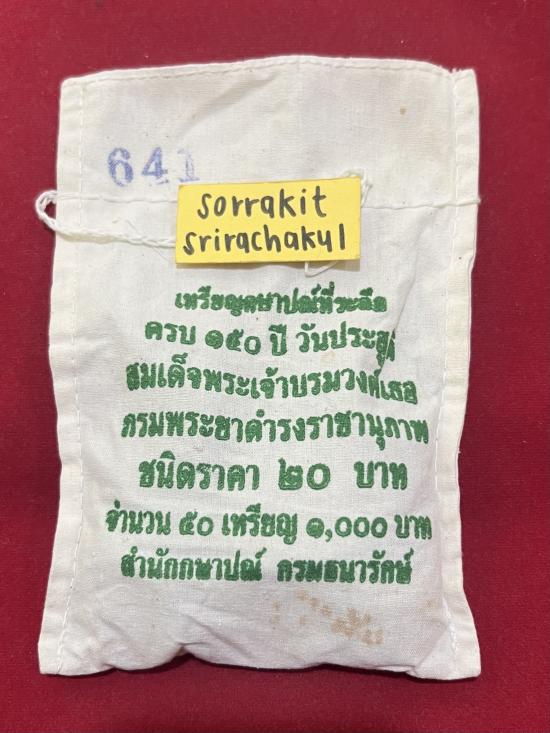 เหรียญ 20 บาท #150ปีวันประสูติกรมพระยาดำรงราชานุภาพ ยกถุง 50 เหรียญอยู่ในถุงผ้าเดิมๆจากกรมธนารักษ์ยังไม่เคยเปิดปากถุงหายากน่าสะสม