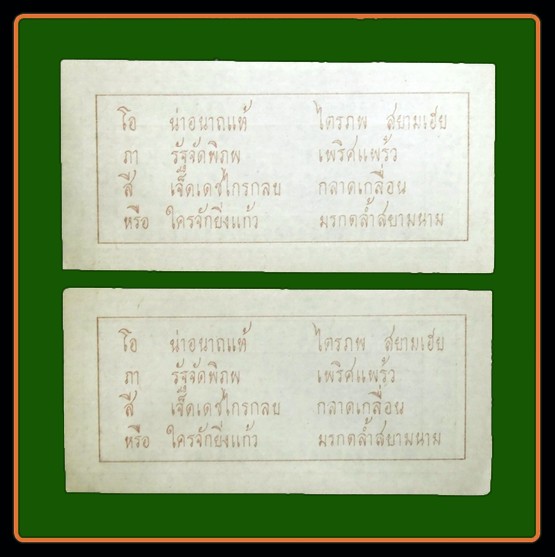 เก่าถึงยุค-นิยม 2แบบ หลังภาษาไทย 2แผ่น-150-กระดาษยันต์กันภัย หลวงพ่อโอภาสี (หายาก ขนาดประมาณ*9+5 ซม.* |