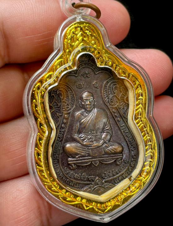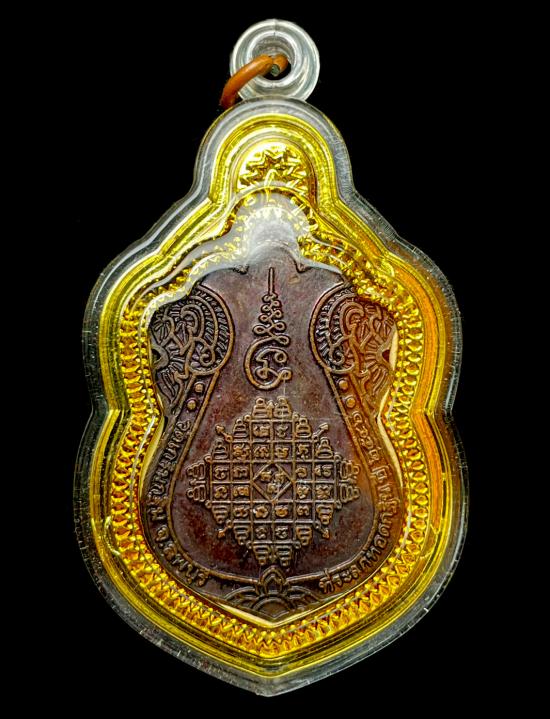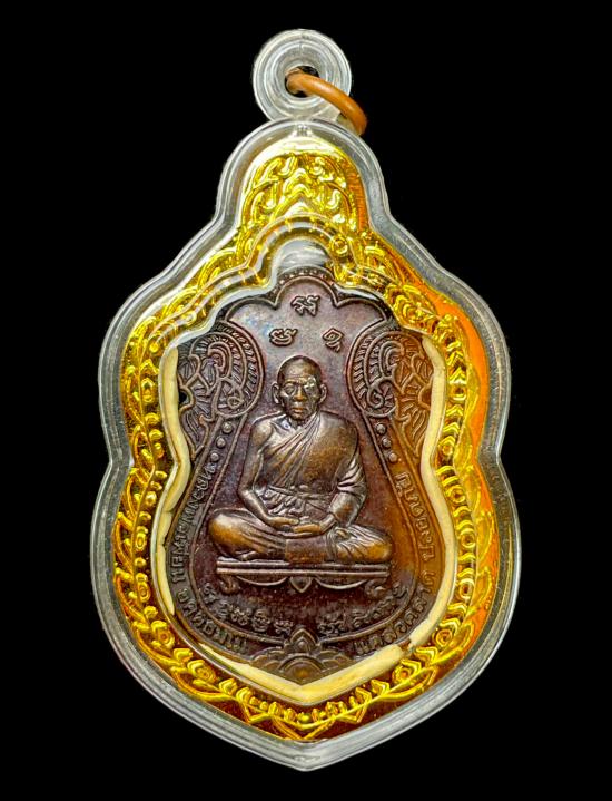 เหรียญเสมาที่ระลึกทอดกฐิน ปี 2546 หลวงพ่อเพี้ยน วัดเกริ่นกฐิน (เหรียญประสบการณ์ 5 แชะ) เนื้อทองแดงรมดำ
