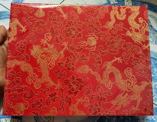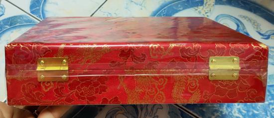 กล่องเครื่องประดับ หุ้มผ้าไหมสีแดงลายมังกรและหงษ์