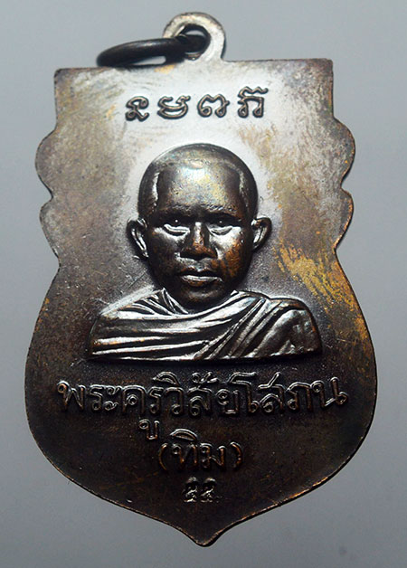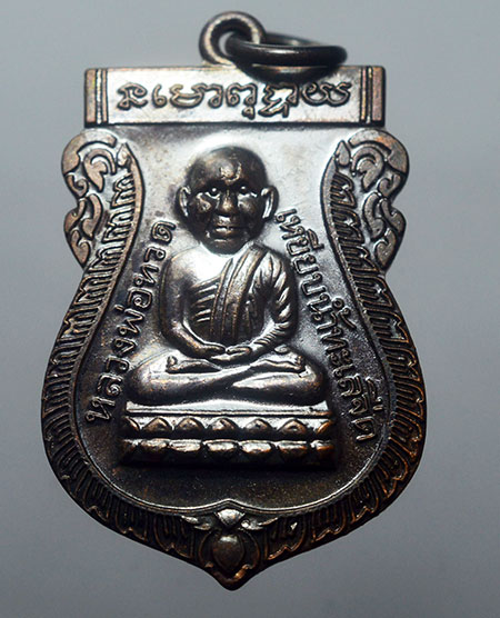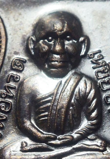 หลวงพ่อทวด พระประจำปี วัดช้างไห้ ปัตตานี ปี 2555 พิมพ์เสมาเศียรโต เนื้อทองแดงรมดำ ตอก ๕๕ ใบคาถา พร้อมซองวัด