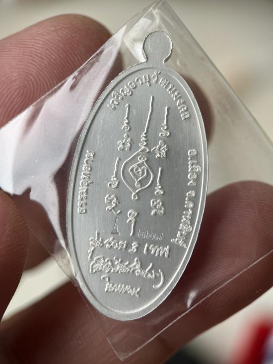 เหรียญยืนอายุวัฒนมงคล81 หลวงปู่มหาศิลา สิริจันโท เนื้อเงินลงยาจีวร เบอร์ 227