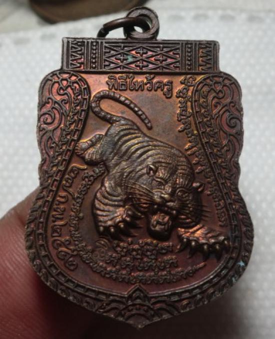 ศักดิ์ศรีเหรียญไหว้ครู พิธีใหญ่ของวัดบางพระ ที่หลวงพ่อเคยพูดกับลูกศิษย์ว่าออกแบบสวยมาก ด้านหลังเหรียญเป็นเสือที่เป็นเอกลักษณ์ของวัดบางพระ มีตอกโค้ต ครับ |