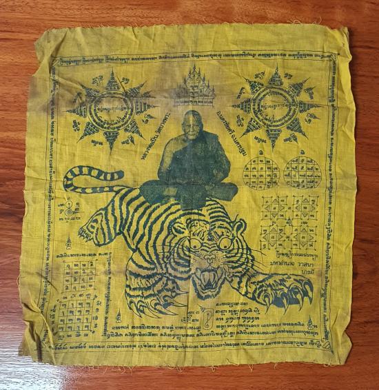 รายละเอียด ผ้ายันต์ หลวงพ่อเปิ่น นั่งเสือ วัดบางพระ จ.นครปฐม