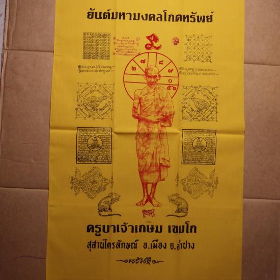 ผืนใหญ่......(ขนาด 22 X 33 นิ้ว) ผ้ายันต์มหามงคลโภคทรัพย์ หลวงพ่อเกษม เลข 1253 ..68.9.26 |