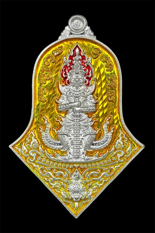 เหรียญจำปีใหญ่ ท้าวเวสสุวรรณ รุ่น เทวาประทานทรัพย์สินเจริญดี ปี 2565 พุทธภิเษก วัดจุฬามณี จ.สมุทรสงคราม เนื้อเงิน ลงยาเหลือง หมายเลข 71 รับประกันพระแท้