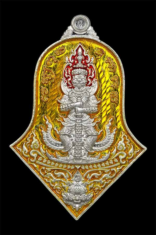 เหรียญจำปีใหญ่ ท้าวเวสสุวรรณ รุ่น เทวาประทานทรัพย์สินเจริญดี ปี 2565 พุทธภิเษก วัดจุฬามณี จ.สมุทรสงคราม เนื้อเงิน ลงยาเหลือง หมายเลข 42 รับประกันพระแท้