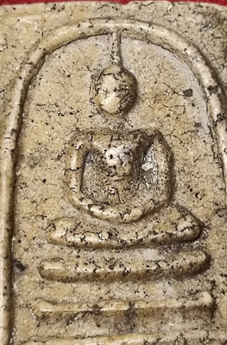 พระสมเด็จ เนื้อเก่า คราบผิวเดิม ๆ เนื้อสัมผัส ออกโทนไขขาว |
