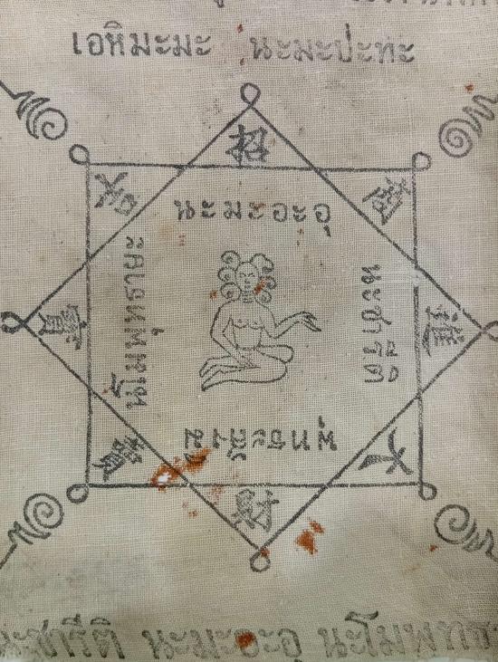 ผ้ายันต์ขนาด 7 * 8 นิ้ว สภาพเก่าตามอายุ แต่ยังสมบูรณ์หายากครับ