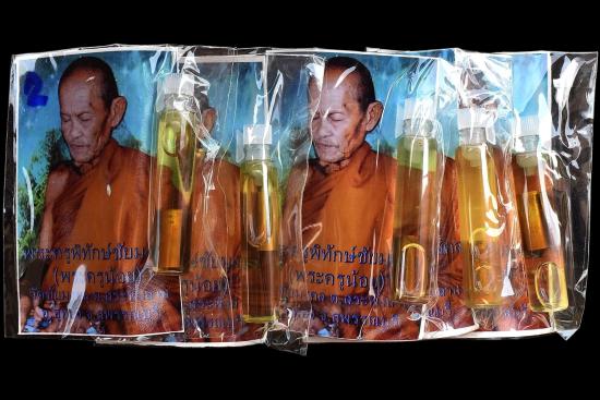 ชุด 5 ขวด...น้ำมันมหาเสน่ห์พรายเนื้อหอม ปี 2557 พระครูน้อย วัดชัยมงคล จ.สุพรรณบุรี พร้อมซองรูปเดิมจากวัด |