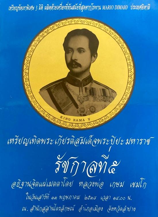 เคาะเดียวไวๆ เหรียญเทิดพระเกียรติ ร.5 เนื้อเงิน บล็อกนอก อธิฐานจิต โดยหลวงพ่อเกษม เขมโก ปี38 เหรียญขัดเงาพิเศษ3มิติ หนักประมาน 14กรัม ตอนจอง2000บาท สวยเดิมไม่ผ่านการใช้ |