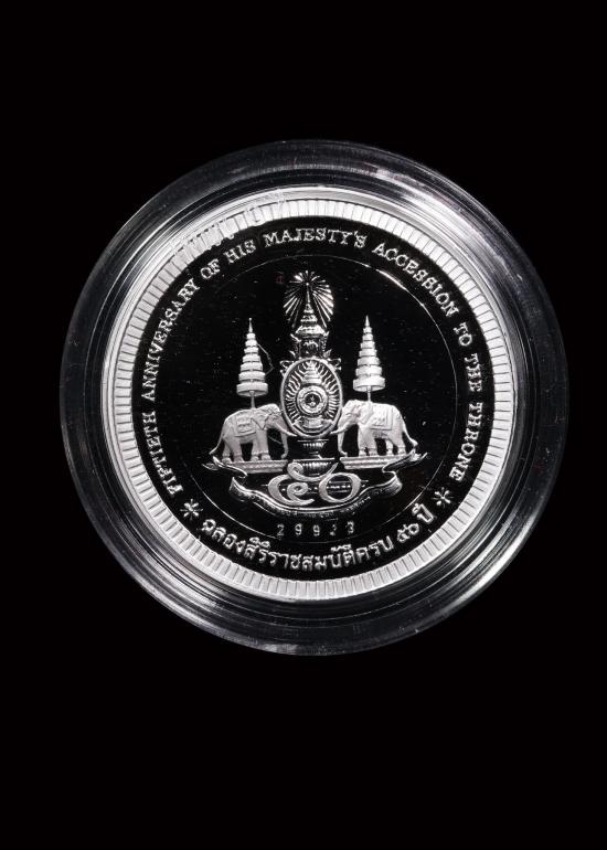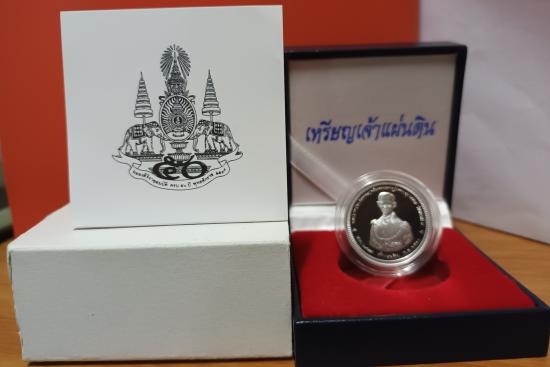 เหรียญเจ้าแผ่นดิน ในหลวงร.9 ทรงครองสิริราชสมบัติครบ 50ปี ปี2539 (((เนื้อเงิน ขัดเงาสามมิติ))) ไม่ผ่านใช้ กล่อง+ใบ