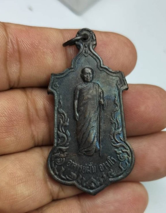 เหรียญหลวงปู่ฝั้น อาจาโร จ.ส.อ.สุนทร คมนามูล สร้างถวายท่านอาจารย์ ปี2518 เนื้อทองแดง
