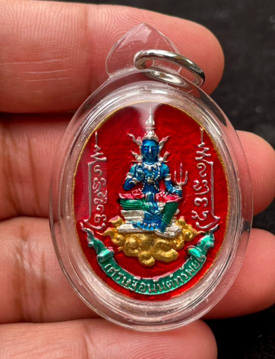 เนื้อ 2 K ลงยาด้านหลังรูปพระอินทร์นั่งบัลลังค์ สวยงาม พร้อมเลี่ยม