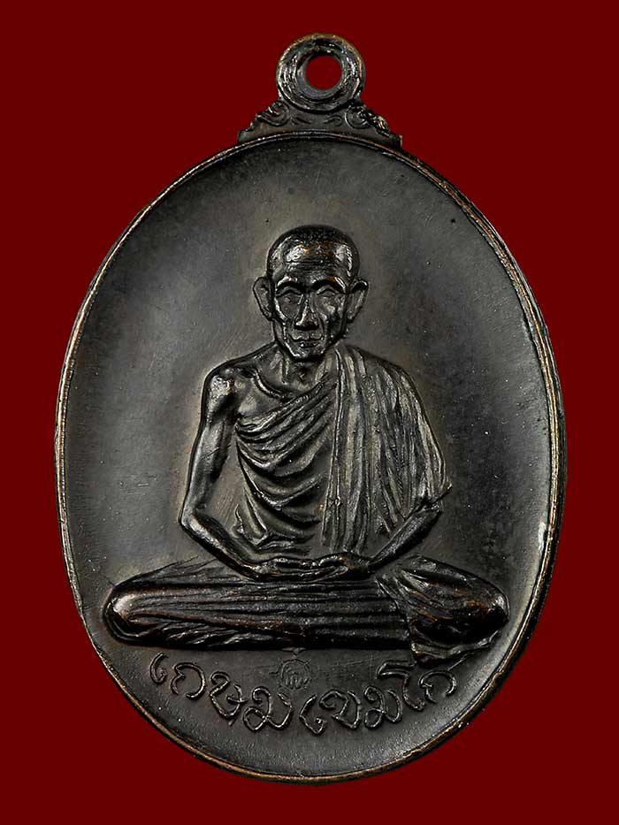 วัดใจ เหรียญหลวงพ่อเกษม สุสานไตรลักษณ์ เนื้อทองแดง ปี2517 จ.ลำปาง (วัดพลับพลาสร้าง) รมดำ