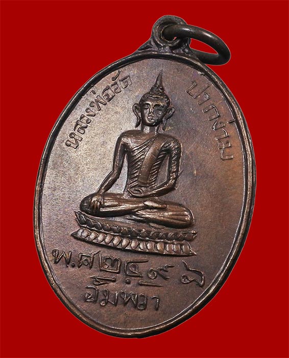 เหรียญหลวงพ่อวัดปากง่าม อัมพวา (วัดพระยาญาติ) สมุทรสงคราม ปี 2498 นิยมแปดกลับ |