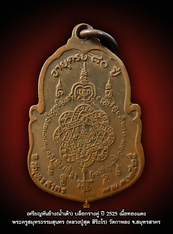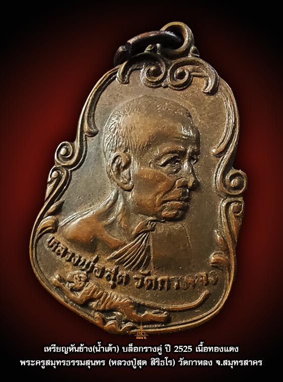 เหรียญหันข้าง (น้ำเต้า) อายุครบ ๘๐ปี หลวงพ่อสุด วัดกาหลง สมุทรสาคร ปี๒๕๒๕ เนื้อทองแดง |