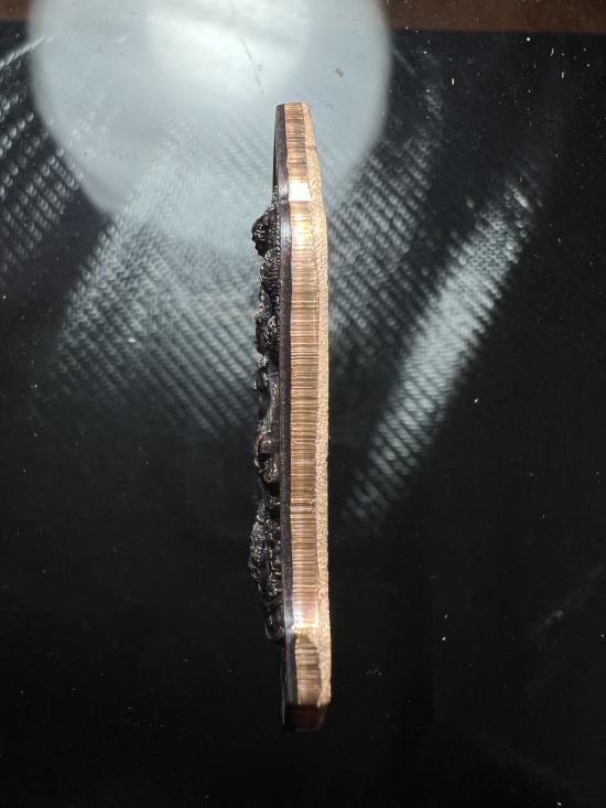เหรียญเบญจทรัพย์มงคลพลิกดวงเก้า เนื้อทองแดงรมดำ วิหารองค์พ่อจตุคามรามเทพนราธิวาส