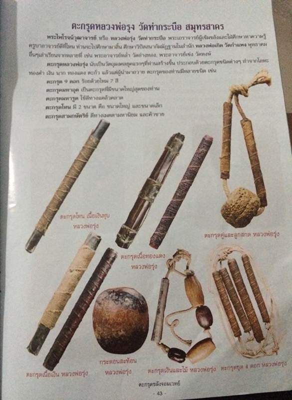 ๑. ตะกรุดมีเนื้อ ทองคำ นาก เงิน ทองแดง ตะกั่ว และหนังเสือ