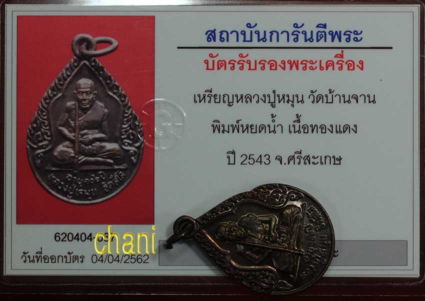 เหรียญ หลวงปู่หมุน วัดบ้านจาน พิมพ์หยดน้ำ เนื้ิอทองแดง ปี2543 จ.ศรีสะเกษ สภาพสวยเดิมๆผิวยังมีเห็นตามซอก ไม่ผ่านการใช้ สร้างน้อย2000เหรียญ หายาก พร้อมบัตรรับรองพระแท้จากจีพระอุ่นใจได้ ไม่ต้องลุ้น ค่ะ