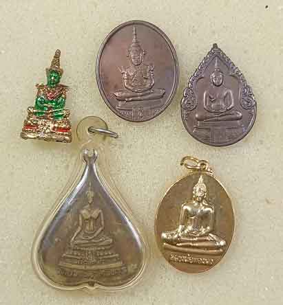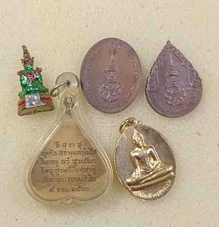 พระพระแก้วมรกต 3 องค์ +เหรียญพระพุทธชินสีห์ใบโพธิ์ วัดบวรนิเวศวิหาร ปี 16 +เหรียญหลวงพ่อทองคำ วัดไตรมิตรวิทยาราม กทม. |