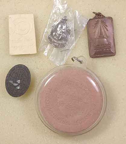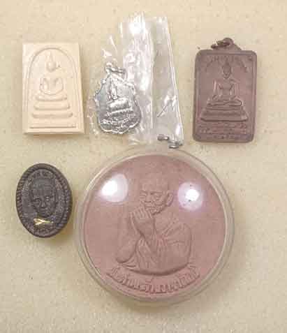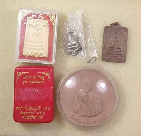 สมเด็จเป้าคำ ลป.สุภา ภูเก็ต+เหรียญลพ.พระทอง หลังลพ.ฝรั่ง วัดพระทอง ภูเก็ต +เหรียญพระพุทธมิ่งเมืองทักษิณ พระบรมธาตุนครศรีธรรมราช +ผงดวงเศรษฐี พ่อท่านอิ่ม วัดทุ่งนาใหม่+พระผงทานบารมีพ่อท่านคล้าย |