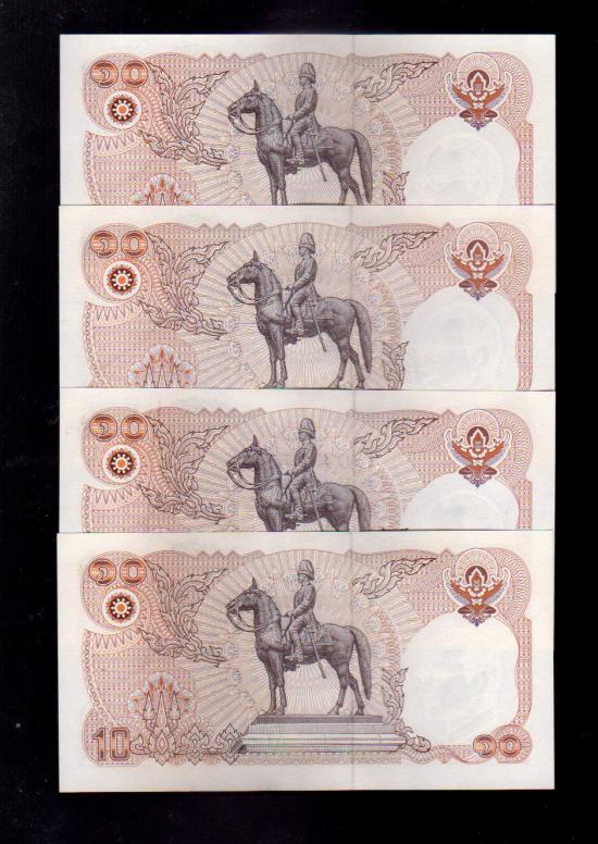 ## ธนบัตร 10 บาท ## ทรงม้า ## 120 ปี กระทรวง ## เรียงเลข 4 ฉบับ ## แกะแหนบ ## ไม่ผ่านการใช้ |