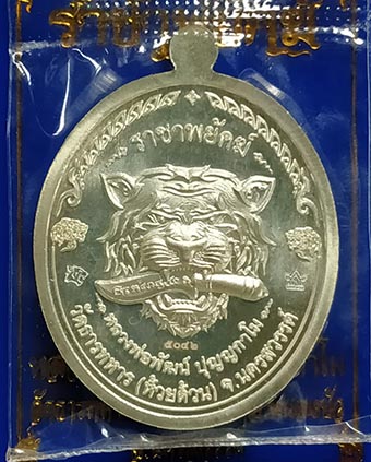 เหรียญหลวงพ่อพัฒน์ วัดห้วยด้วน "รุ่นราชาพยัคฆ์ปี" 2563 เนื้อเงินลายเสือ ลงยาแดง ลงยาจีวร เลขสวย |