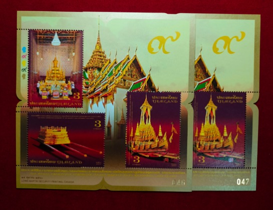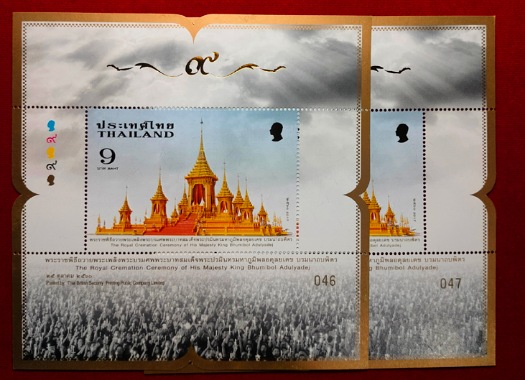 แสตมป์พระราชพิธีถวายพระเพลิงพระบรมศพ ร.9 สองชุด 6 แผ่น เลข 046 - 047 |