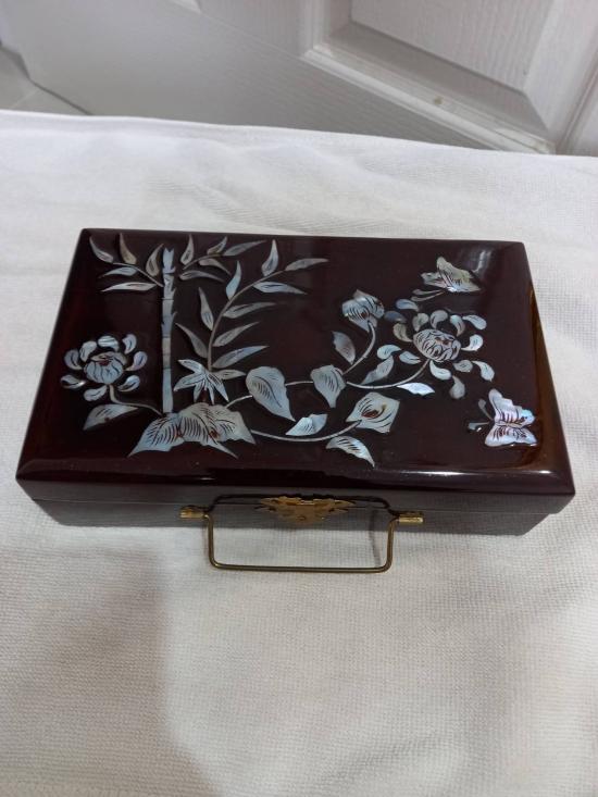 กล่องไม้ประดับมุก ใส่เครื่องประดับ เหรียญพระเครื่อง งานวินเทจ (ขนาดกล่องยาว 8นิ้ว /กว้าง5นิ้ว/หนา2.5นิ้ว)สวยสมบูรณ์ เคาะเดียว |
