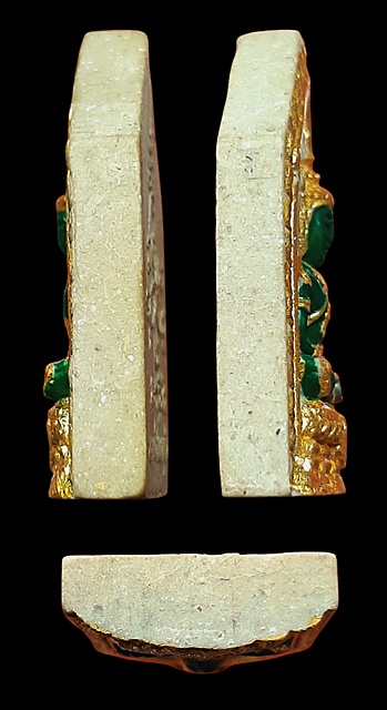 พระแก้วมรกต ทรงเครื่องฤดูร้อน ทรงห้าเหลี่ยม หลังยันต์ เนื้อผงปิดทอง ไม่ทราบที่ครับ