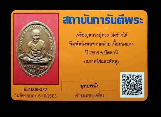 เหรียญหลวงปู่ทวดหลังพ่อท่านคล้าย ปี08