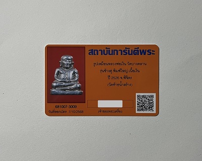 รูปหล่อหลวงพ่อเงิน รุ่นช้างคู่ พิมพ์ใหญ่ เนื้อเงิน ปี 2526 พร้อมบัตรรับรอง G |