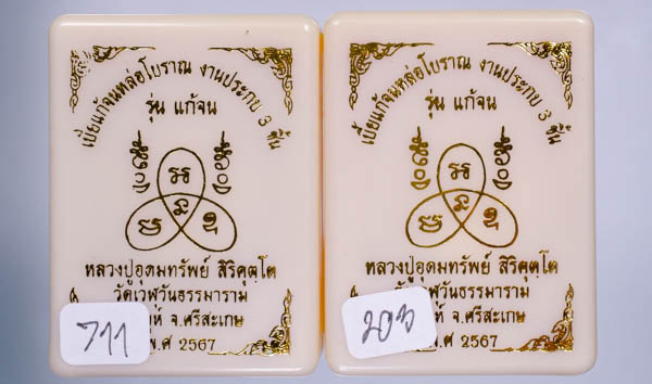 งานหล่อ ประกบ3 ชิ้น ข้างในมีผงงาช้างบด มวลสาร เขย่าดูมีมวลสาร สวยๆ หลวงปู่มหาศิลาร่วมเศก แบ่งเบาๆ ออฟชั่นเนื้อจะมีหลายๆ เนื้อหรือลงยาร่วมด้วย