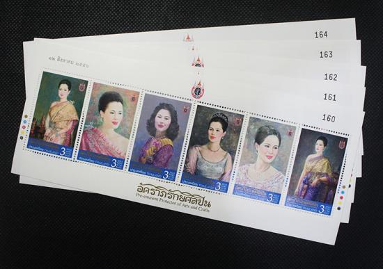 ดวงตราไปรษณียากรชุดพิเศษมหามงคล "อัคราภิรักษศิลปิน" จำนวน 6 ภาพ จัดทำขึ้นเนื่องในโอกาสมหามงคลเฉลิมพระชนมพรรษา 12 สิงหาคม 2555 โดยได้อัญเชิญพระสาทิสลักษณ์ของพระองค์ท่าน จากฝีมือการวาดของ นายจักรพันธุ์ โปษยกฤต ศิลปินแห่งชาติ สาขาทัศนศิลป์ (จิตรกรรม) ปี 2543 จำนวน 6 ภาพ มาออกแบบเป็นตราไปรษณียากร "อัคราภิรักษศิลปิน" เป็นชุดดวงตราไปรษณียากรไทย ลำดับที่ 999 พร้อมอัญเชิญตราสัญลักษณ์งานเฉลิมพระเกียรติฯ มาประดิษฐานที่ด้านบนของแผ่นตราไปรษณียากร |