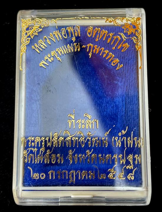 วัดใจ พระขุนแผน-กุมารสมบัติ หลวงพ่อพูล วัดไผ่ล้อม จ.นครปฐม เนื้อชุบทองปัดเงา ปี 2548 เลี่ยมพลาสติก สวยงาม |