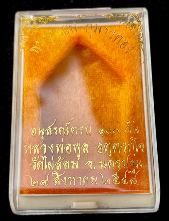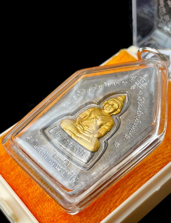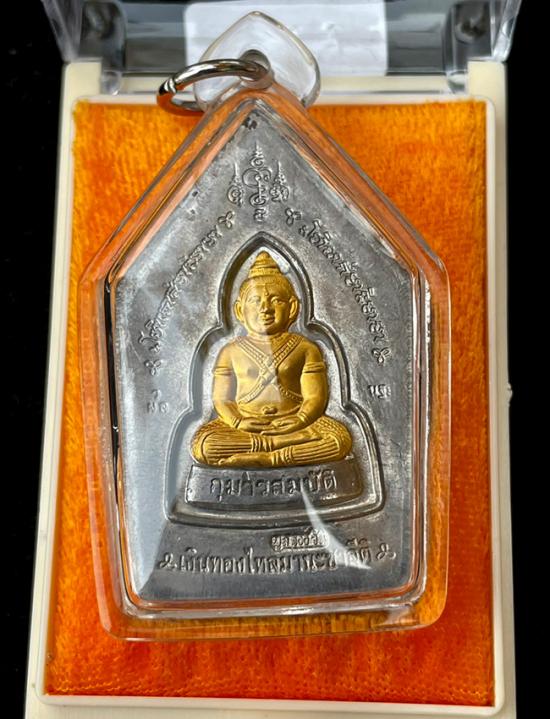 พระขุนแผน-กุมารสมบัติ หลวงพ่อพูล วัดไผ่ล้อม จ.นครปฐม เนื้อตะกั่วหน้ากากเงิน หลังหน้ากากชุบทอง ปี 2548 เลี่ยมพลาสติก สวยงาม