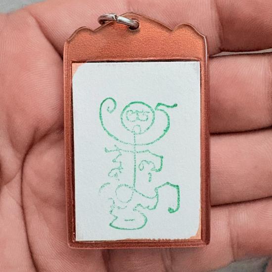 รูปถ่ายฟิล์มซีเปียหลังปั๊มยันต์ตุ๊กตาหมึกสีเขียว+ตอกโค๊ตนกยูง ปี 58 (กรรมการ) หลวงพ่อกวย วัดโฆสิตาราม ชัยนาท