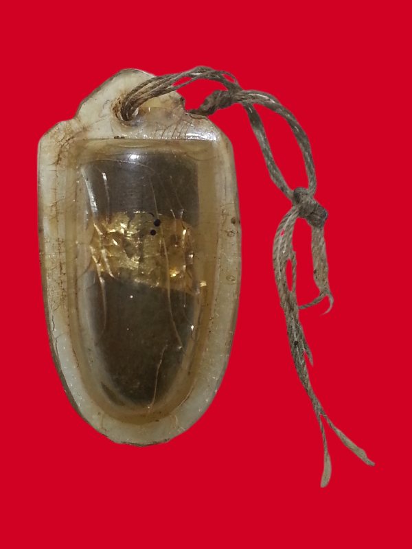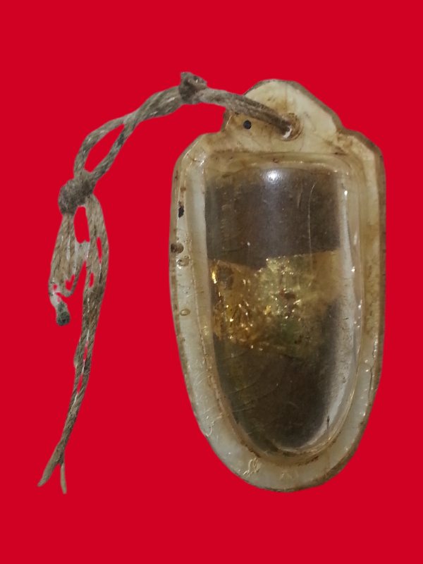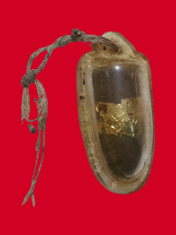 ชื่อพระเครื่อง ตะกรุดหัวลูกปืน ลงทอง เลี่ยมพลาสติกเก่า
