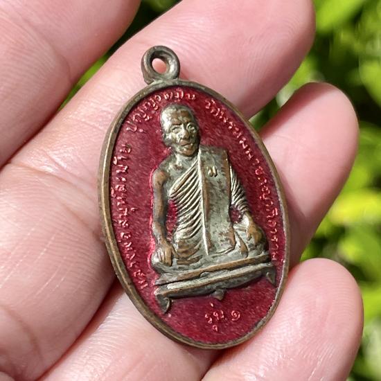 เคาะเดียวแดง เหรียญหลวงพ่อละม้าย วัดพรหมมาชดญาติการาม จ.สุรินทร์ ที่ระลึกงานคล้องช้าง กะไหล่เงินลงยาสีแดง |