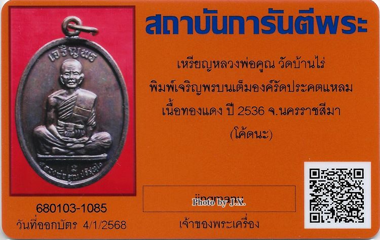 เหรียญ หลวงพ่อคูณ วัดบ้านไร่ จ.นครราชสีมา
